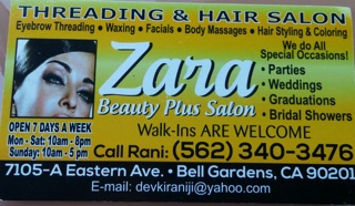Zara Beauty & Threading Salon is located in Bell Gardens Marketplace and serves local residents and visitors seeking reliable Threading Service services.